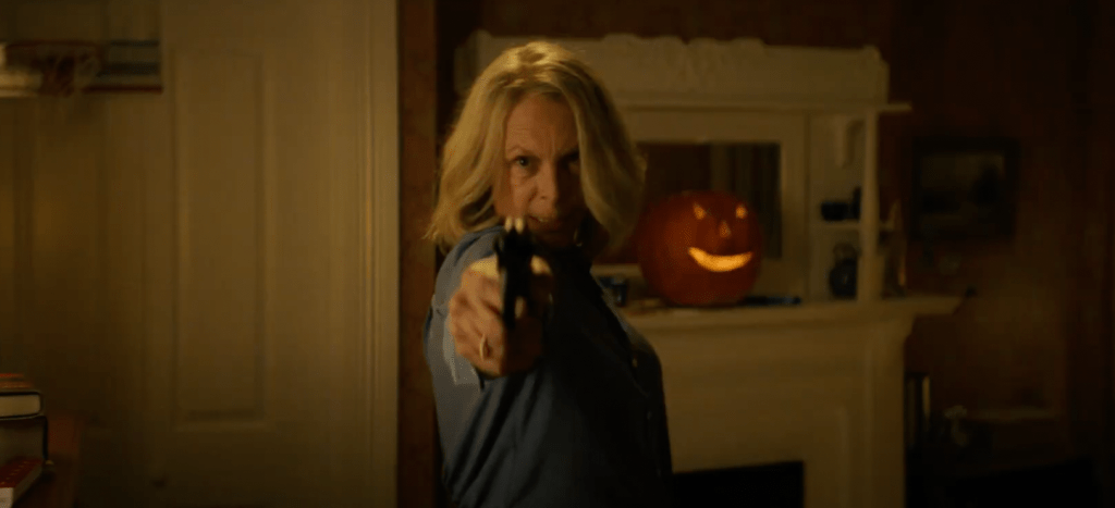 THE QUICK SUMMARY: It’s been five years. No one in Haddonfield has seen The Shape since the events of the previous film, and Laurie Strode along with her granddaughter Allyson are trying to move on with their lives. The town, though, has other plans and if they can’t direct their venom at Michael Myers, they’ll find other targets, among them young Corey, who accidentally killed a young child while babysitting on Halloween Night four years previously. That event, and the town’s explosive PTSD trigger an evil long thought gone, and before you know it Laurie, Allyson, and Corey are drawn into a horrific night of terror…one more time.