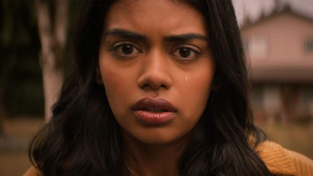 It Lives Inside centers the story around Indian-American teenager Samidha. Samidha doesn’t want to be seen as an other. A child of Indian immigrants, Samidha makes a significant effort to fit in with her white classmates. This includes shortening her name to Sam, speaking English to her Hindi speaking mother, and doing homework for her classmates. However, her goth looking former childhood friend Tamira keeps trying to talk to her. She finally corners Samidha in the locker room begging her to pray over a weird mason jar. Apparently a monster lives in the jar. Samadhi, feeling the pressure of her “cool” white friends observing the situation, does what any teenage girl would; berates her former friend and smashes the jar. Surely nothing can happen. It’s only a jar. Soon after an invisible force kidnaps Tamira and begins stalking Samidha. Samidha starts having nightmares. The same entity brutally attacks people close to her or kills them. It’s only when Samidha embraces who she truly is and the people around her that she can defeat the demon called the Pishach.