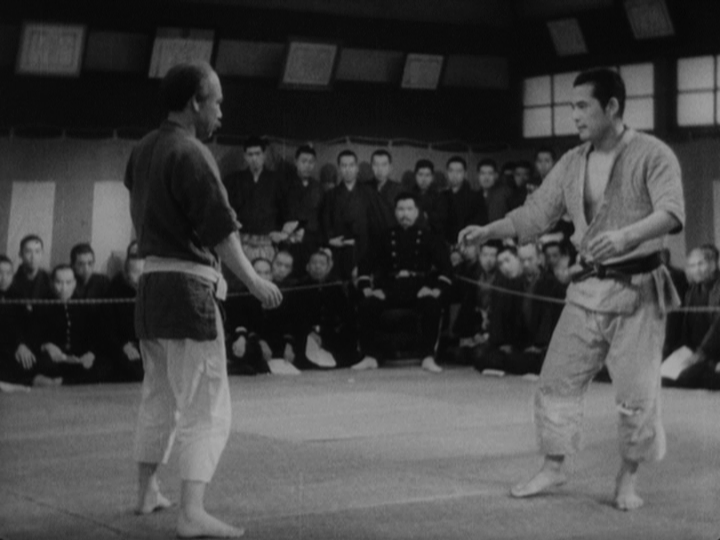 ANYTHING ELSE, JON? In this first entry of the series, it encourages me to read Chris’ words and note how many of the same details that we picked up on in our own separate viewings. I’ve also been thinking more about how the forced removal of footage from the movie affects the experience of watching it. Certainly since it was not Kurosawa’s choice to have the footage removed, it shouldn’t be considered as part of his larger aesthetic. As Chris noted in his thoughts however, Kurosawa’s focus in the movie is already a bit askew from what I’d expect from a movie about judo and jiu jitsu. The inescapable fact that we’re forced to skip over sections of “plot” creates a bizarre resonance with Kurosawa’s own goals that makes Sanshiro Sugata a curiously fleet footed film.