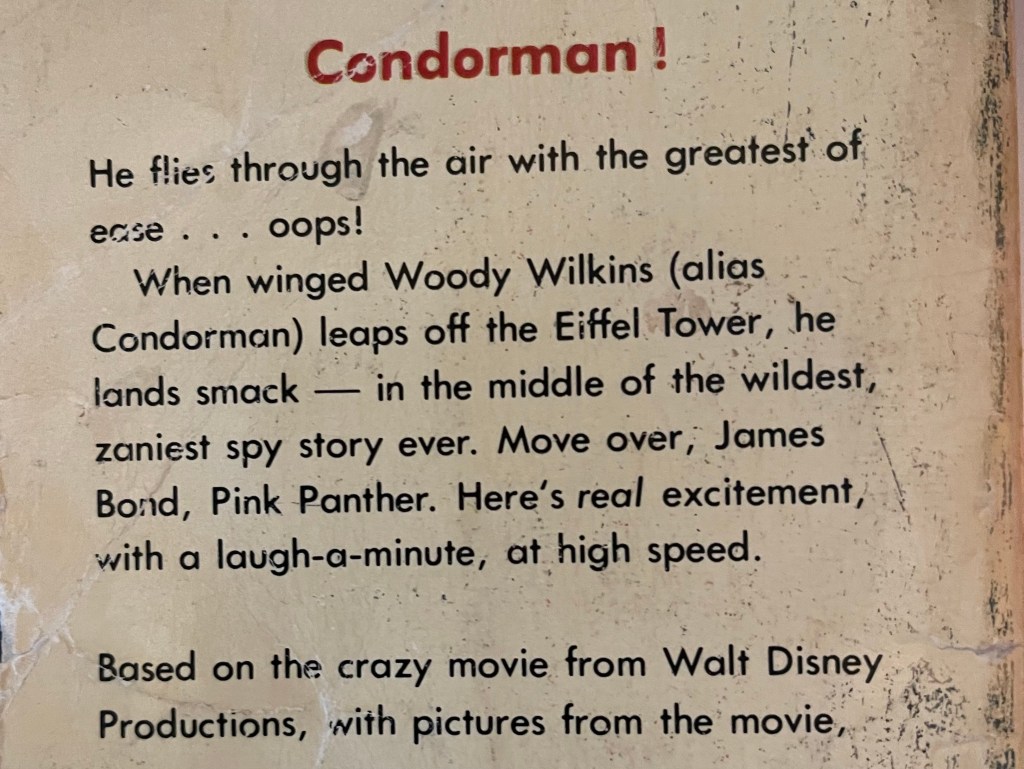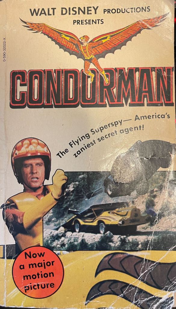 On the day I started reading the novelization of Condorman by Joe Claro, I learned that several layers of management were leaving their positions at my job, and that our new director was nowhere to be found. That same week, my car broke down for the sixth time in four months, forcing me to beg coworkers for rides to work and forcing my spouse (whose car I cannot drive) to do all family chores outside the house. In that same month, our American neighbors elected Donald Trump to his 2nd presidential term in a wave of terrifying rhetoric that will have ill effects for everyone. Against that backdrop, I don’t think even a good book would stand a chance, let alone a cheaply made novelization of a movie that is mostly forgotten except as an Easter egg reference in a Pixar short film. But taking fundamentally silly things seriously is what I like to do, so stick with me as I tell you the story of Condorman.
